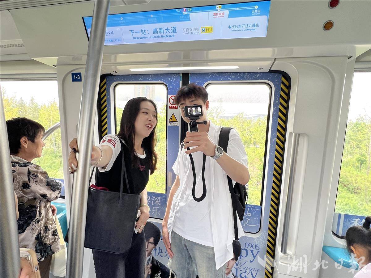 让孙宁晨难忘的,还有最后的空轨体验。凭“知音湖北”旅游年卡免费进站后,她特意选了一个透明的观景位。列车悬在10米高空启动后,只见脚下的绿树溪流与路面车流同步后退。